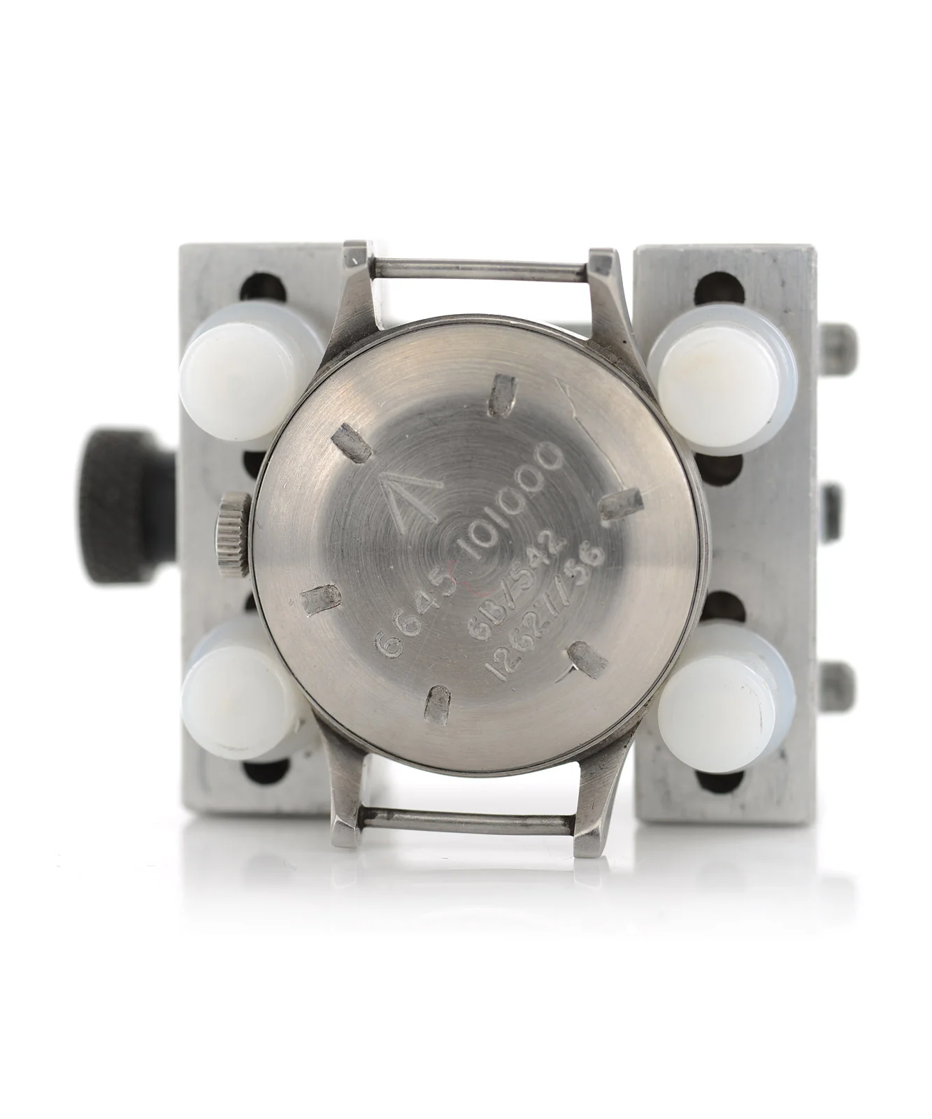 These watches were given the same 6b/542 stores reference as the Omega navigators watch, so we can assume were issued to RAF pilots and navigators. This makes some sense for a test order - the inside of an plane cockpit was a fairly harsh environment for a mechanical wristwatch due to the presence of electromagnetic fields. The watches are shielded from electromagnetic interference by an iron dial and mumetal dust cover, which form an effective Faraday cage to prevent electromagnetic disturbance.